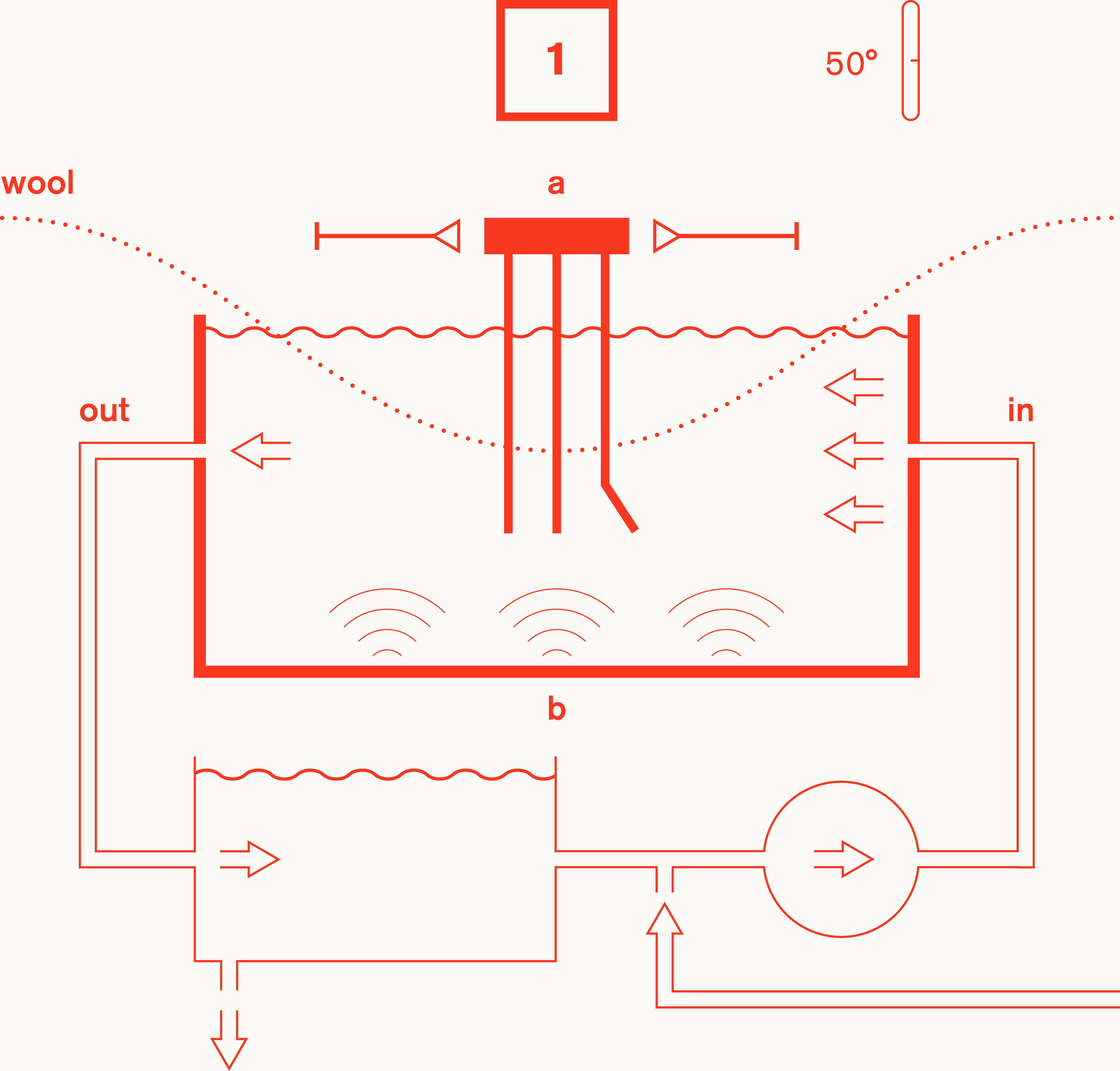 L’immagine che segue rappresenta il processo di lavaggio della lana attraverso tre vasche principali, ognuna con una funzione specifica:
