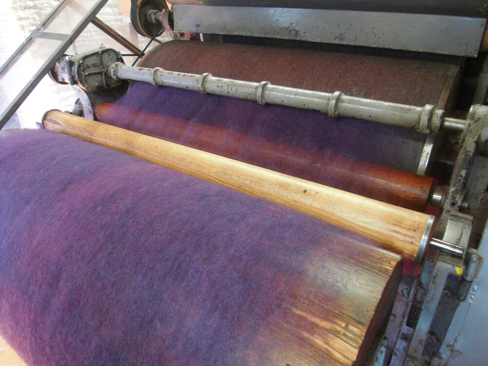 - Passaggio della lana tra rulli e tamburi con punte metalliche